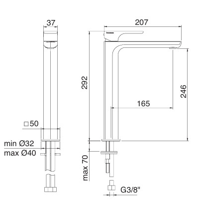 3MM Hask mosdó csaptelep, 292 mm magas, különleges színekben