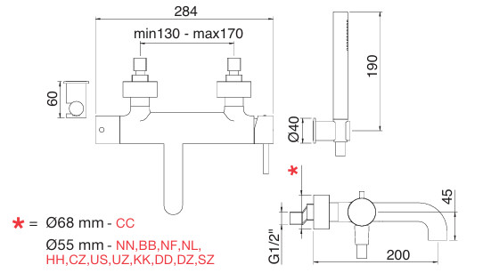 3MM Up+ fali kád csaptelep, zuhanyszettel, króm színben