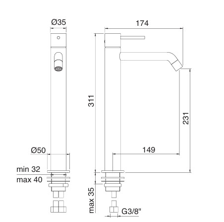 3MM Up+ mosdó csaptelep, 311 mm magas, különleges színekben
