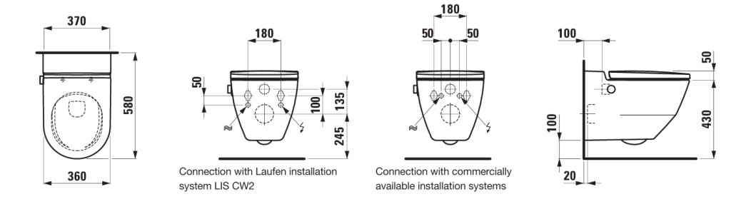 LAUFEN CLEANET NAVIA fali, bidéfunkciós, fényes fehér porcelán wc és H9201150000001 falba építhető INEO wc tartály + 892604 vízkőtlenítő adalék.