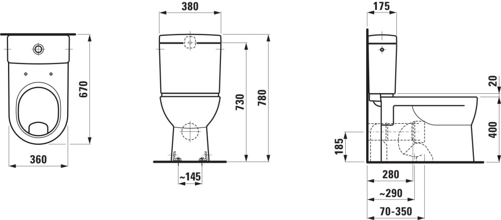 Laufen Pro álló monoblokkos wc H8249590000001, síköblítésű