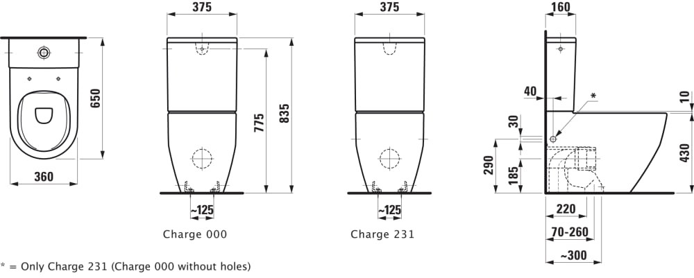 Laufen Pro porcelán álló monoblokkos wc, rimless, öblitőperem nélküli öblítés, rejtett rögzítésű, vario lefolyós, mély öblitésű. A wc tartályt, wc ülőkét és a lefolyóívet (padlóba történő szennyvíz elvezetés esetén) külön kell megrendelni. Alsó bekötésű wc tartály használata esetén, igény szerint rendelhető oldalsó lyukkal is.